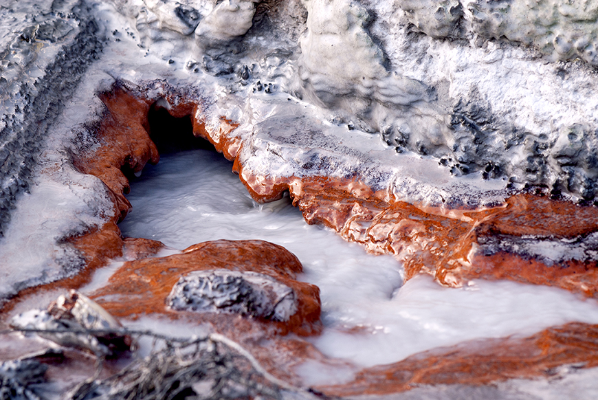 Ecologia: Apesar das condições extremas, as fumarolas suportam microecossistemas únicos, com: