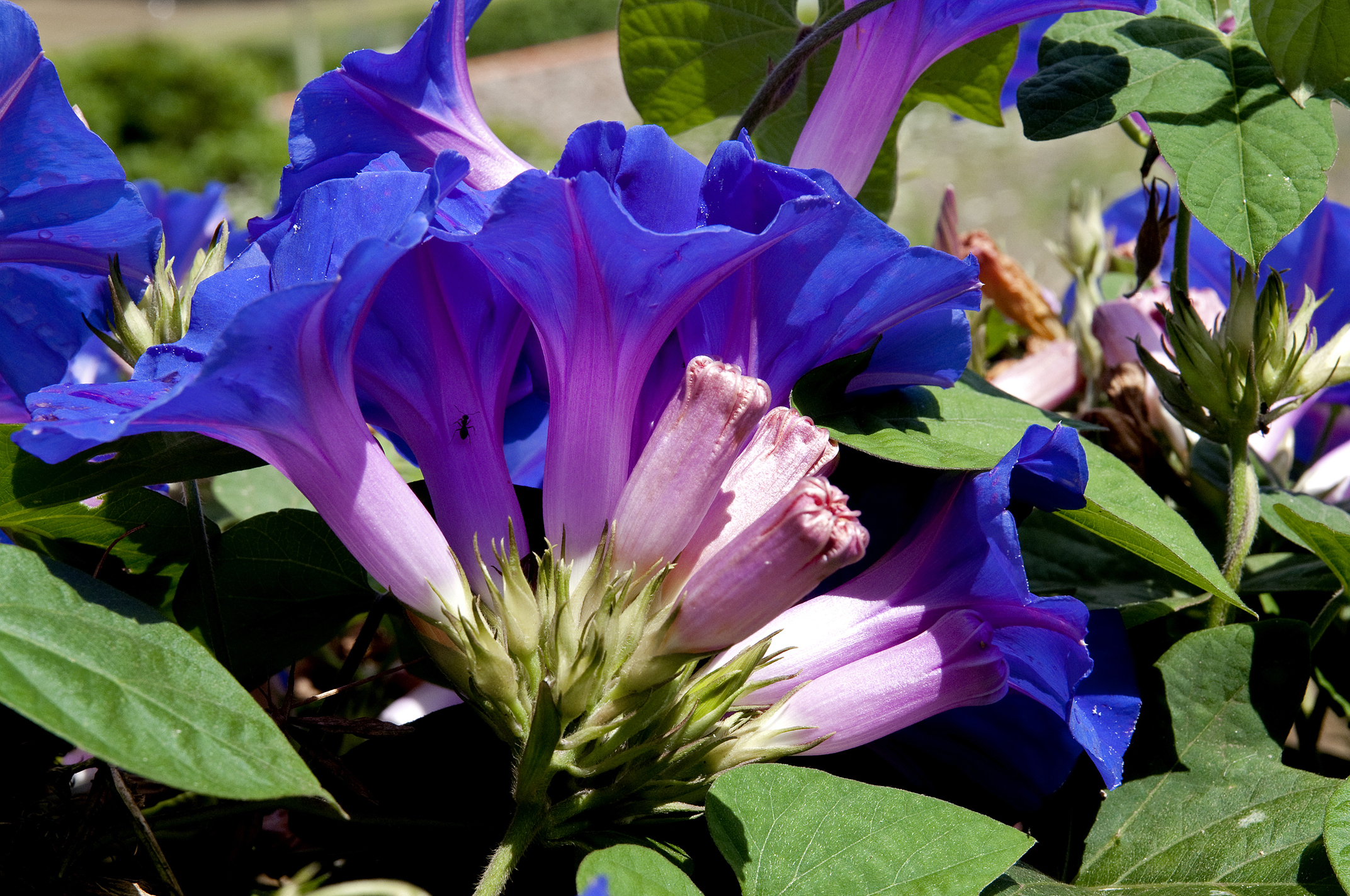 Descrição: Planta trepadora com caules flexíveis e resistentes, que se agarram a muros, árvores e postes. Produz flores grandes e vistosas de cor roxa ou azul, muito atrativas. Propaga-se principalmente por via vegetativa, formando tapetes densos.