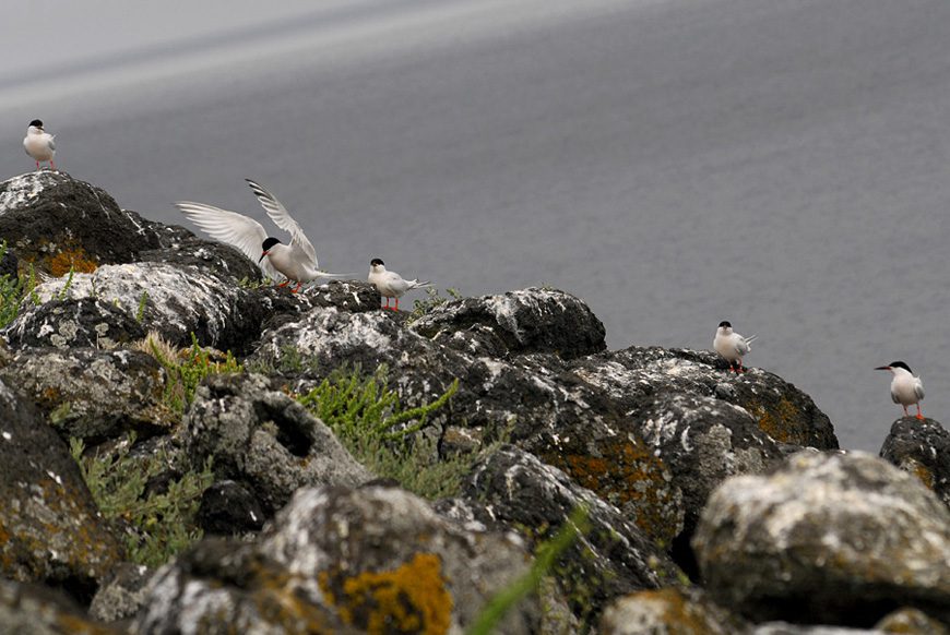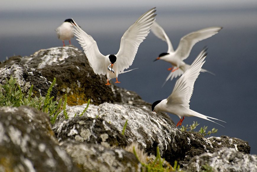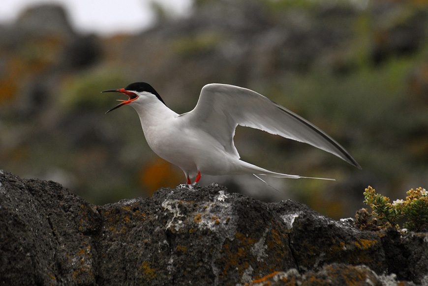 Ecologia/habitat – Nidificação em praias e ilhéus. Chegam aos Açores final de março – início de abril, iniciam a postura em início de maio, e enfrentam ameaças em terra por predadores introduzidos e humanos, além de competição com gaivotas e outras aves marinhas. Põe geralmente 1–2 ovos, com incubação de 21–28 dias, e as crias voam aos 22–30 dias. Alimenta-se principalmente de peixes pequenos, lulas e, ocasionalmente, crustáceos ou formigas aladas, trazendo as presas intactas para as crias.