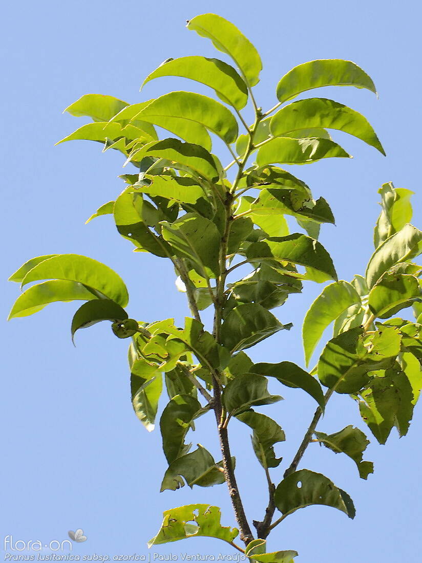 Ecologia: A Prunus azorica é uma das espécies endémicas mais raras dos Açores. Cresce sempre acima dos 500 metros de altitude, preferencialmente em ribeiras estreitas e profundas, e mais raramente em povoamentos densos de floresta nativa em encostas. A sua distribuição é muito limitada e fragmentada, o que a torna vulnerável e prioritária para conservação.