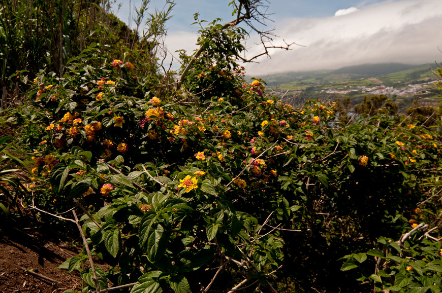 Ecologia: A Lantana camara foi introduzida nos Açores para fins decorativos, mas rapidamente se naturalizou e tornou-se invasora. Propaga-se facilmente por sementes e pode ocupar grandes áreas, competindo com espécies nativas. Prefere altitudes baixas, em locais secos e expostos ao sol. A sua presença representa uma ameaça à biodiversidade local, especialmente em habitats costeiros e zonas degradadas