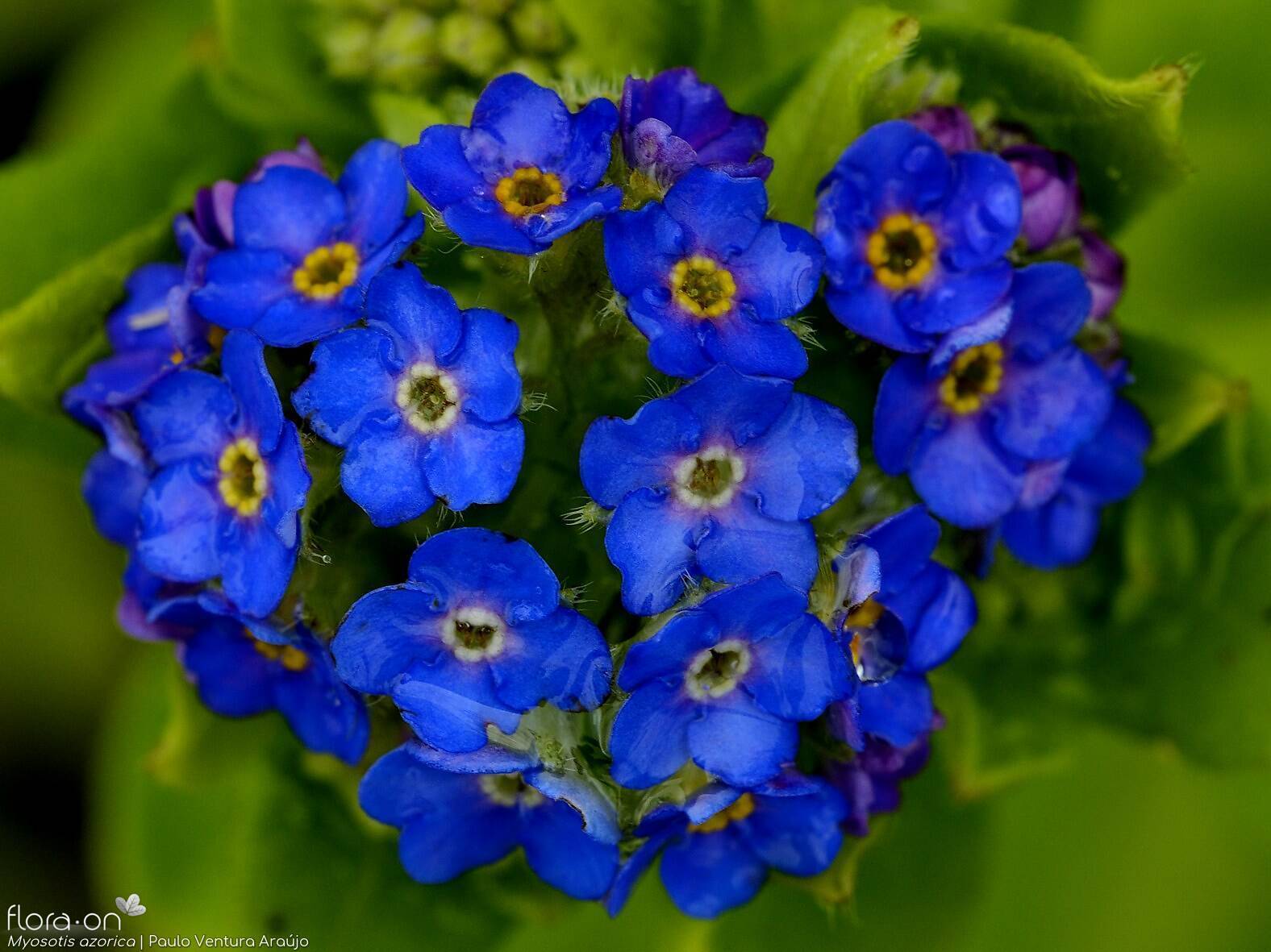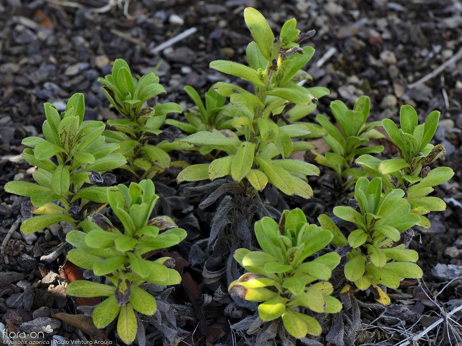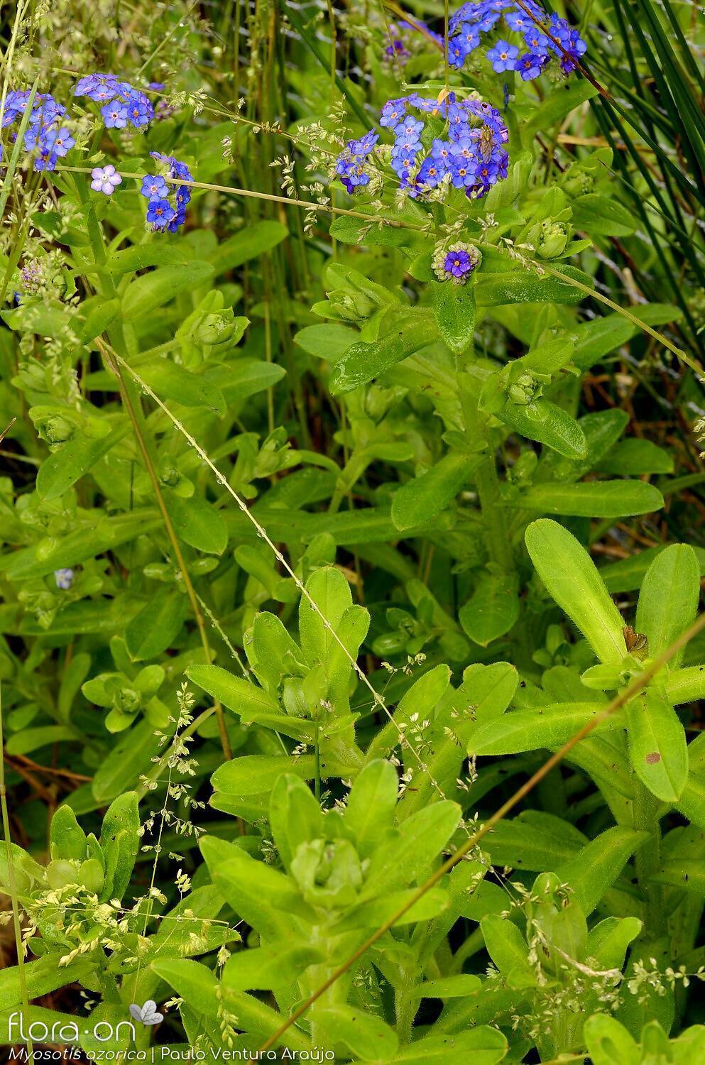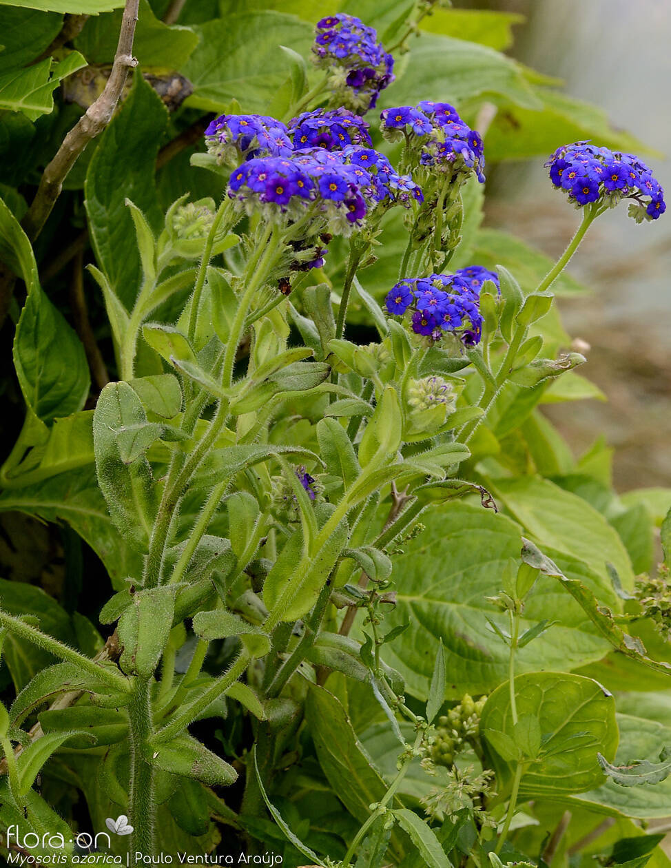 Ecologia: A Myosotis azorica é uma espécie rara, com populações muito limitadas. Cresce entre os 400 e 600 metros de altitude, em encostas húmidas e zonas acidentadas, como taludes e áreas próximas de quedas de água. Está altamente ameaçada, sobretudo pelo pastoreio de cabras e ovelhas, e encontra-se em risco de extinção.