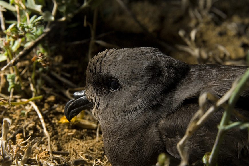 Breve descrição – Pardela minúscula (16–19 cm), envergadura 35–39 cm. Plumagem escura uniforme com faixa branca no uropígio. Bico fino e curto. Voo rápido e rasante sobre o mar.