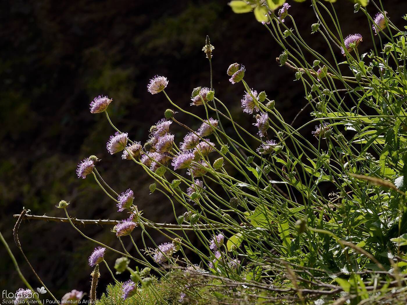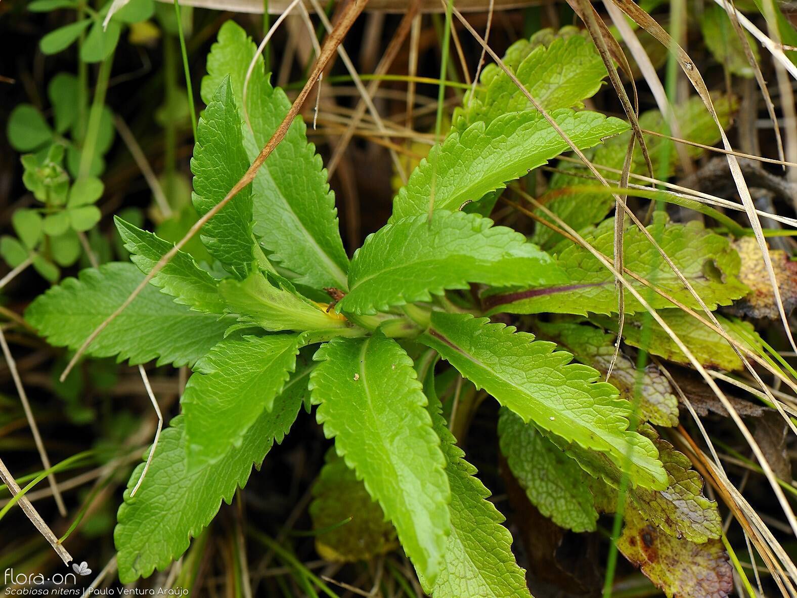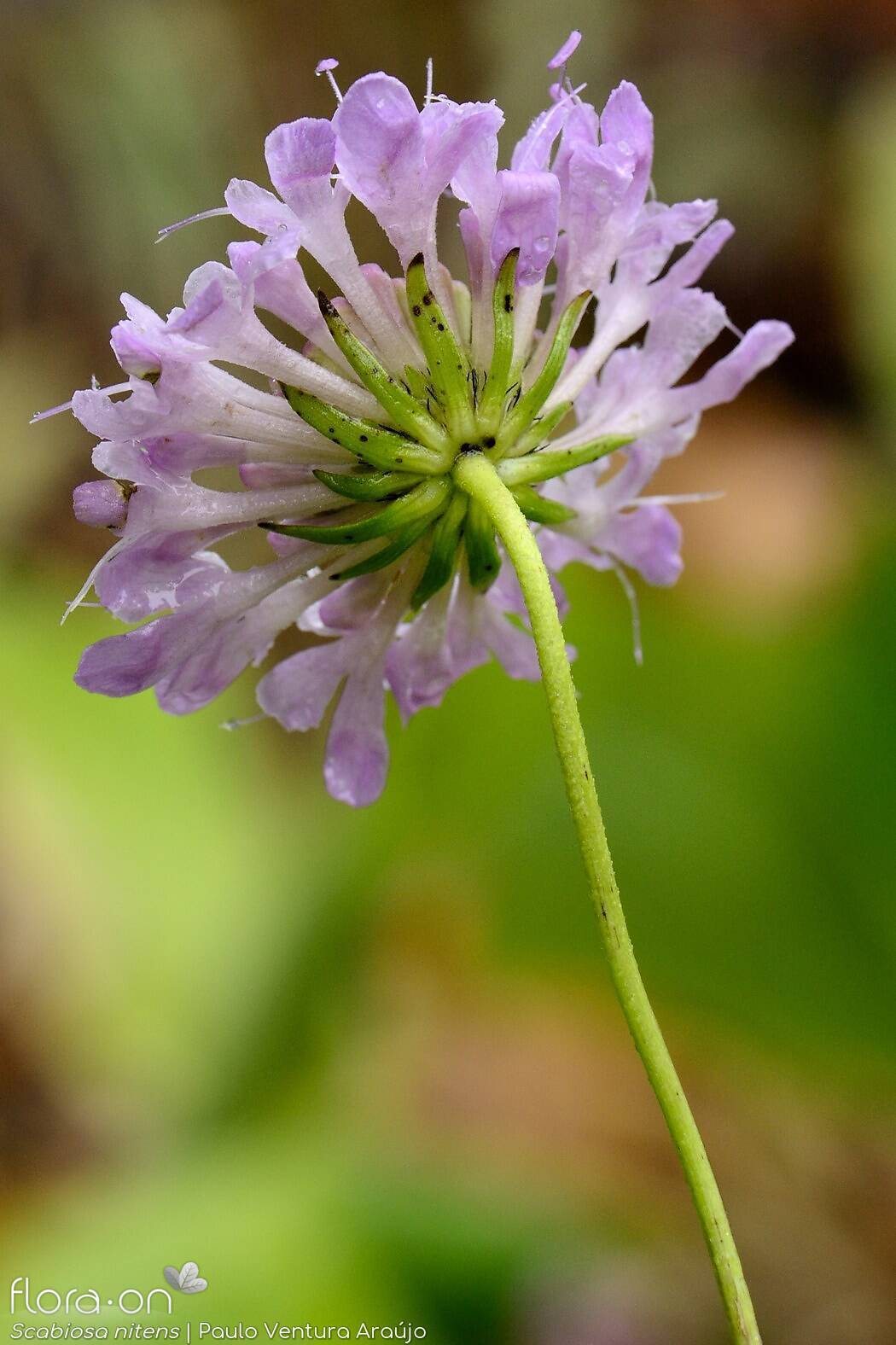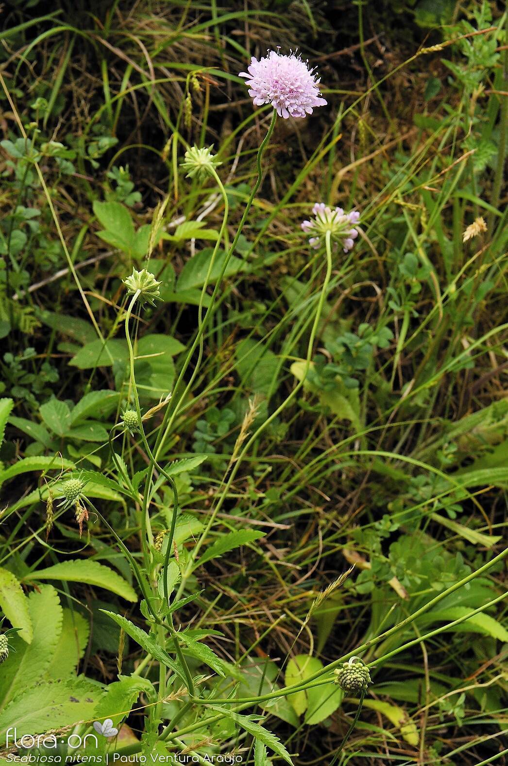 Ecologia: A Scabiosa nitens pode ocorrer até aos 1000 metros de altitude. Não está restrita a uma comunidade vegetal específica, sendo encontrada em diversos habitats, desde falésias costeiras e prados de montanha até zonas cultivadas. Embora possa parecer isolada, geralmente há outros indivíduos por perto, por vezes em número considerável.