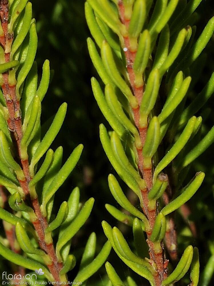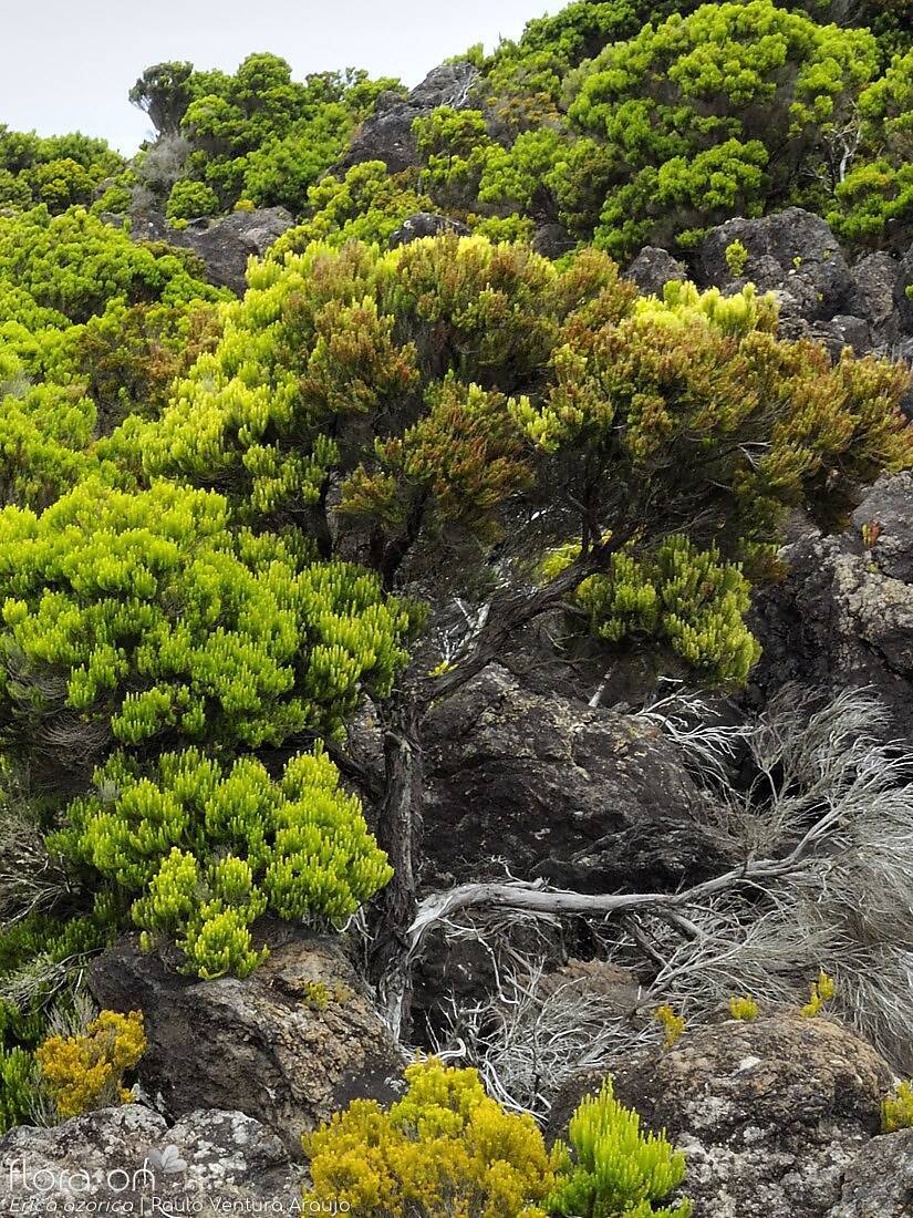 Ecologia: A Erica azorica é extremamente resistente à secura e aos ventos fortes, embora sensível ao pastoreio. É uma das primeiras espécies a recolonizar áreas naturais após perturbações humanas. Pode ser encontrada desde os 10 até aos 2000 metros de altitude, em diversos habitats como falésias, encostas secas, ravinas, crateras e bosques naturais. Em florestas maduras de louro e cedro, os troncos antigos podem albergar comunidades únicas de musgos epífitos.
