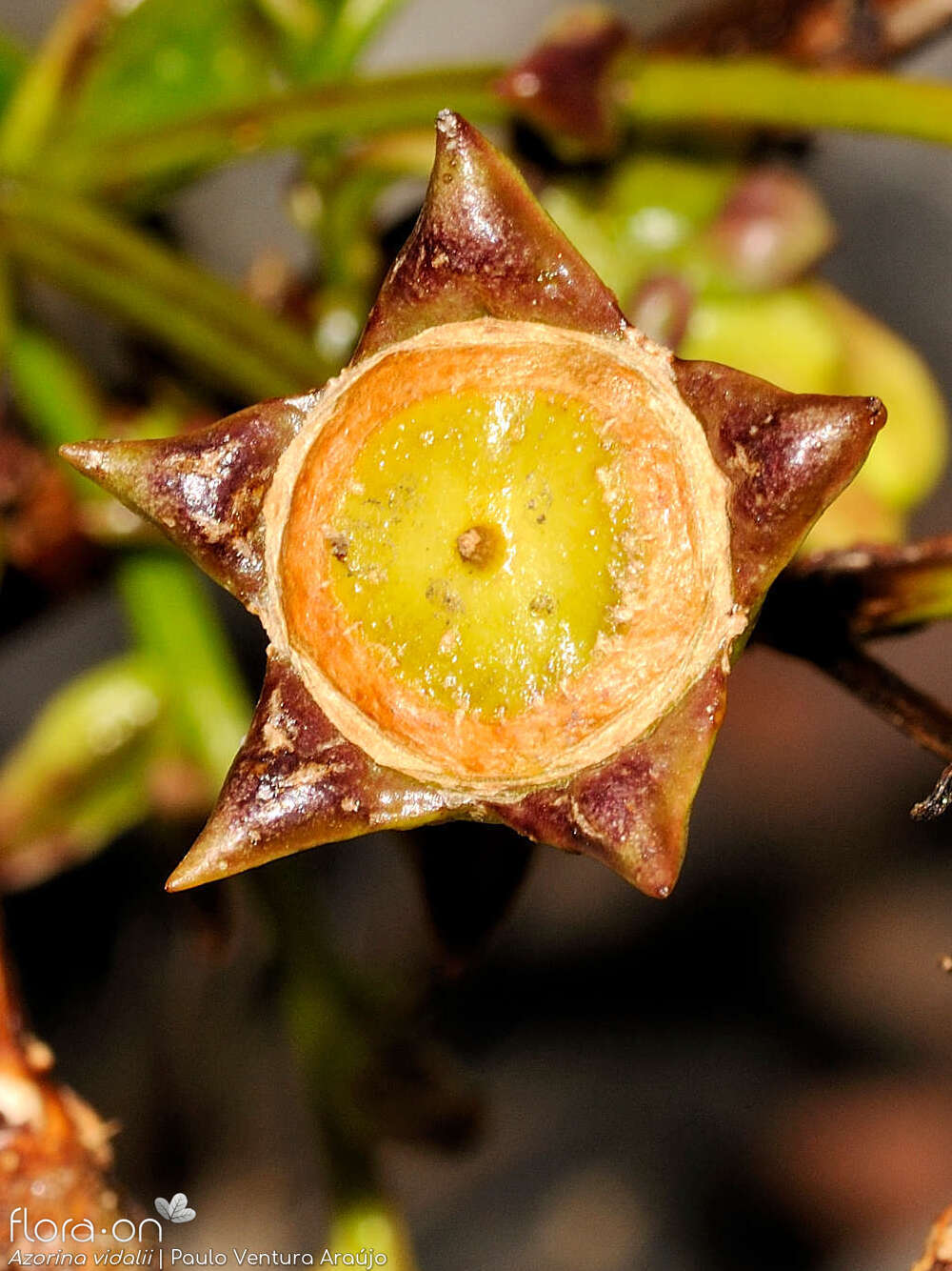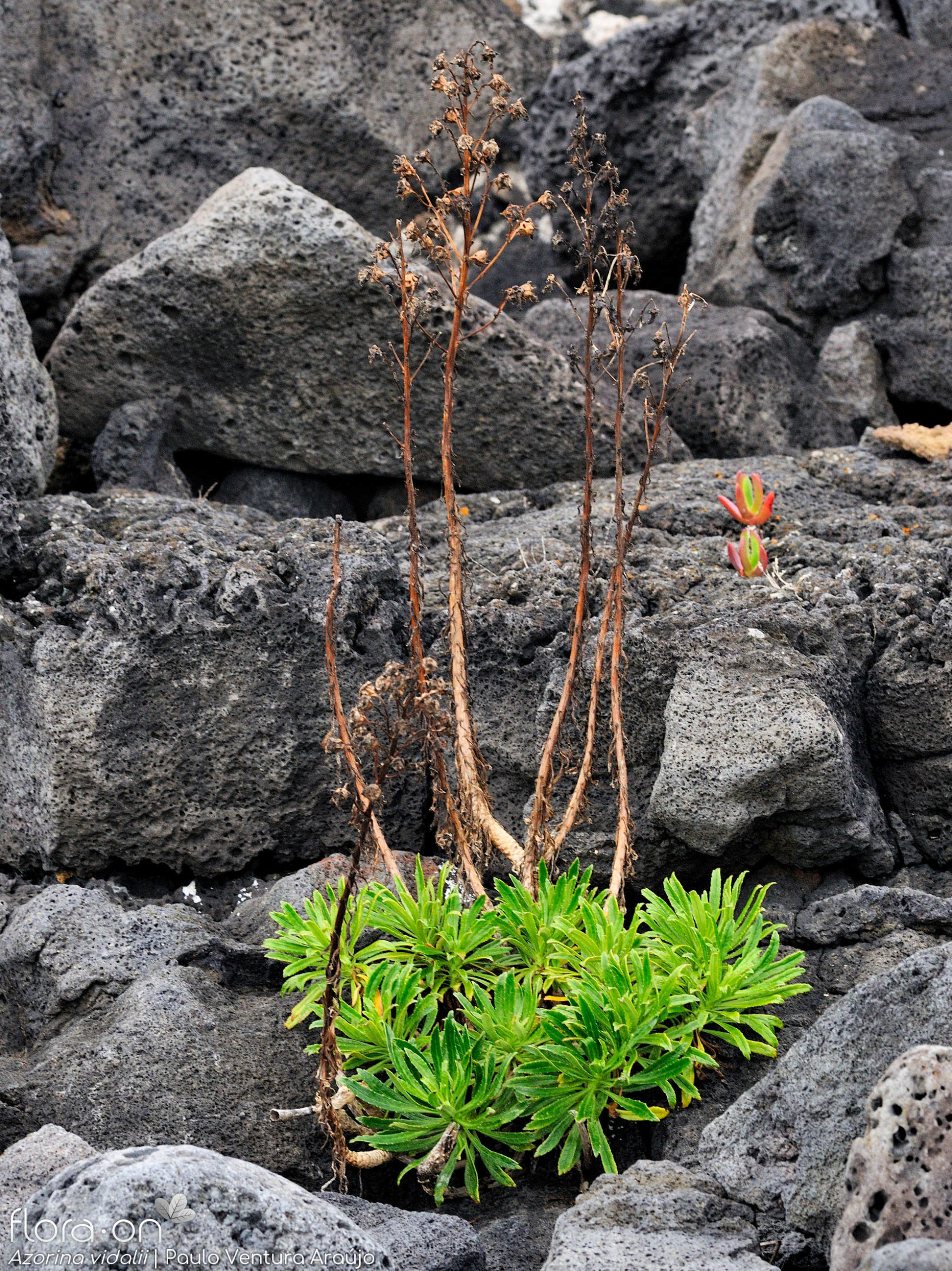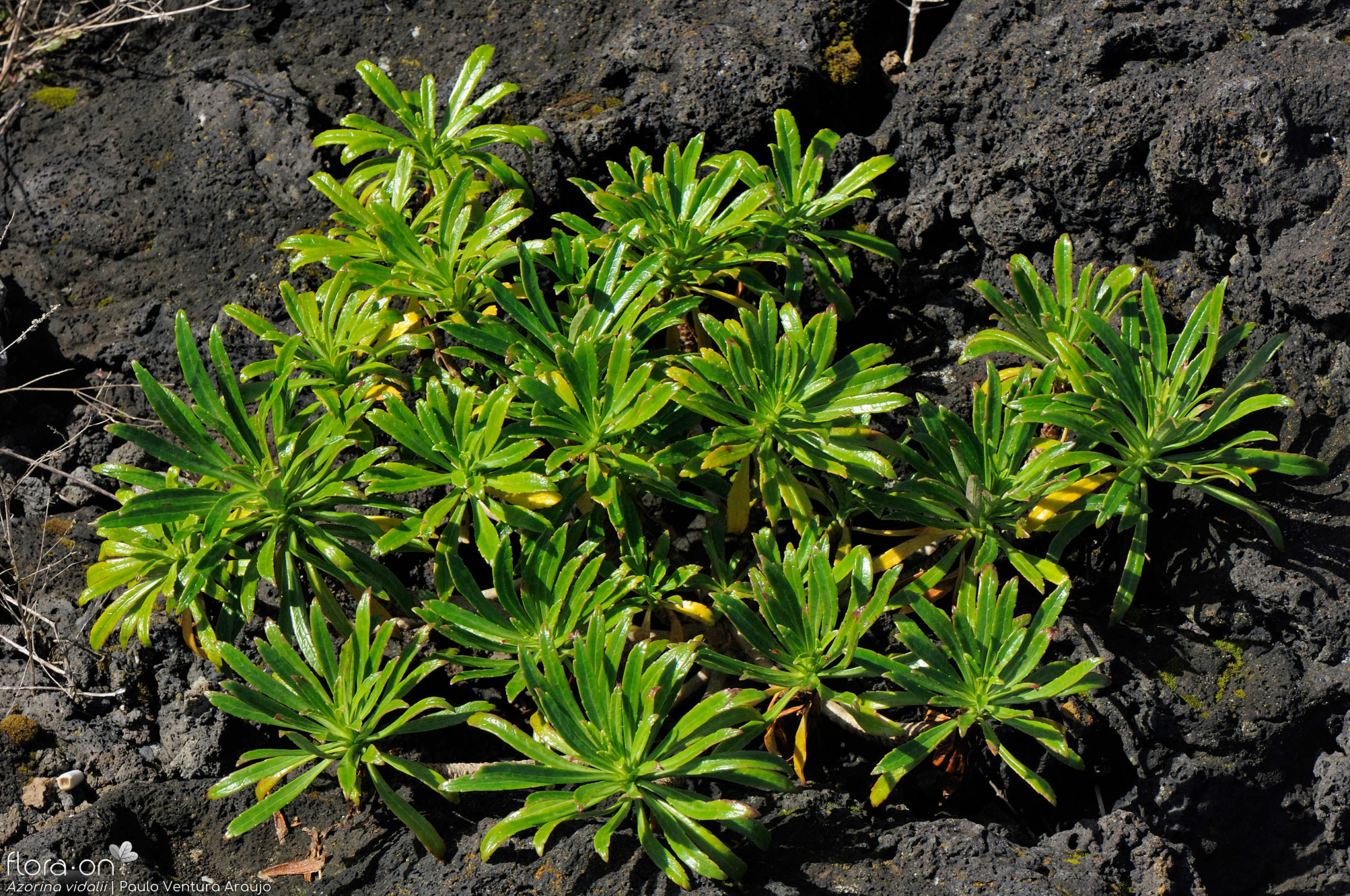 Ecologia: A Azorina vidalii cresce principalmente em locais costeiros expostos, como fendas de falésias e encostas arenosas. Também pode ser encontrada em habitats de substituição, como telhados e muralhas. É uma planta resistente à brisa marítima e frequentemente associada a outras espécies tolerantes a esse ambiente. Apesar de ter sido plantada como ornamental em algumas ilhas, as populações naturais mais significativas encontram-se no Pico, São Jorge, Flores e Corvo.