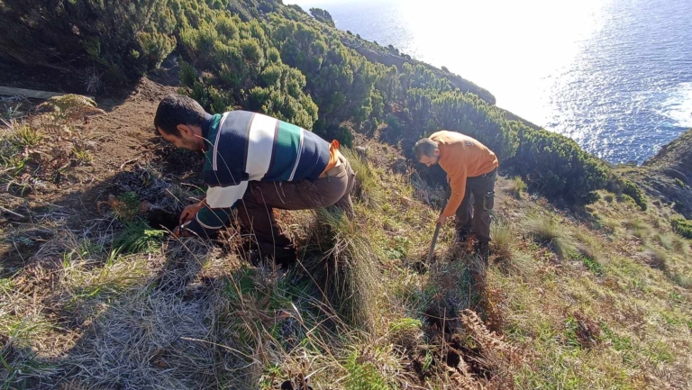 2025.06.03 – Limpeza de invasoras e plantação de espécies nativas na Fajã dos Cubres – São Jorge