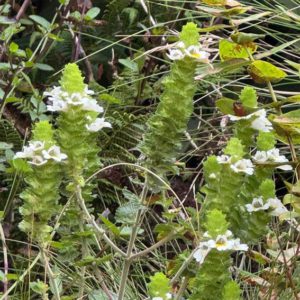 As part of the work carried out on the island of Flores by LIFE IP AZORES NATURA, the team from the Regional Directorate for the Environment and Climate Action identified a new individual of Euphrasia azorica in peak flowering, located near the project’s intervention area.