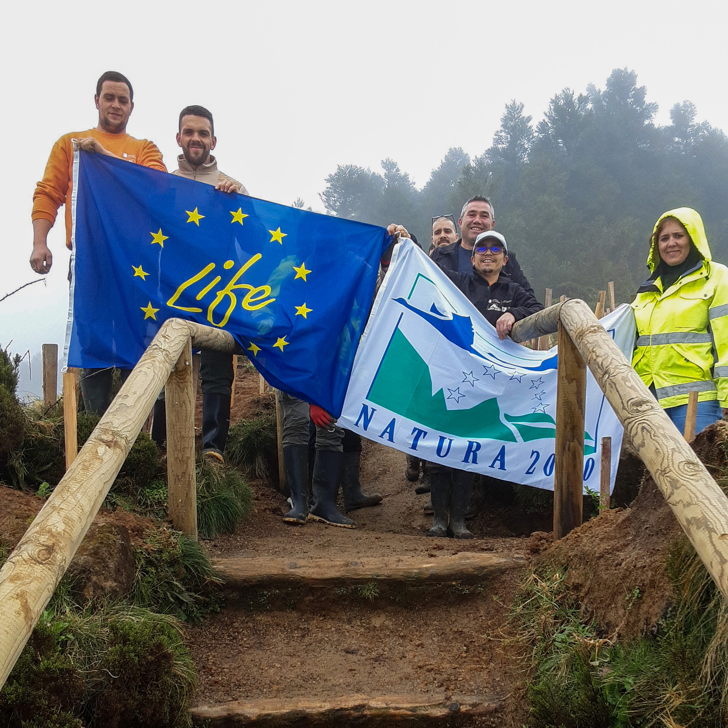 As part of action C3.2 – In-situ conservation of the LIFE IP AZORES NATURA project, a team of operatives, technicians and park rangers from the São Miguel Environment and Climate Change Service planted around 180 specimens of native species (Chaerophyllum azoricum, Angelica lignescens, Calluna vulgaris, Hypericum foliosum and Leontodon rigens) in Grota do Inferno, some of which are protected by the Habitats Directive.