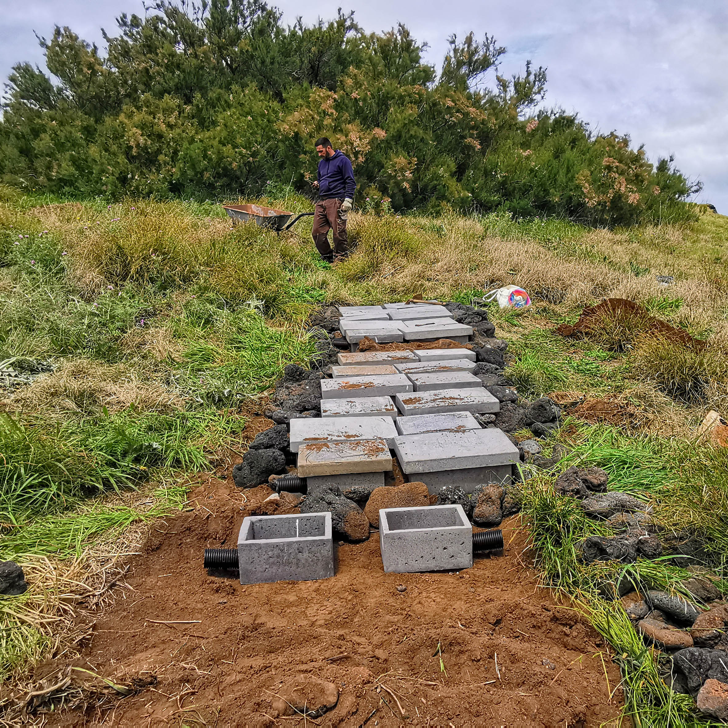 The first nests installed on Praia Islet were made of clay, but their fragility and the excessive temperature inside led to them being replaced by nests made of a mixture of cement and sawdust, with a 5 cm diameter entrance, specifically adapted to storm-petrels. These new nests, installed between March and May of this year, proved to be more effective at thermal insulation and more robust in the face of the adverse weather conditions characteristic of these islets.
