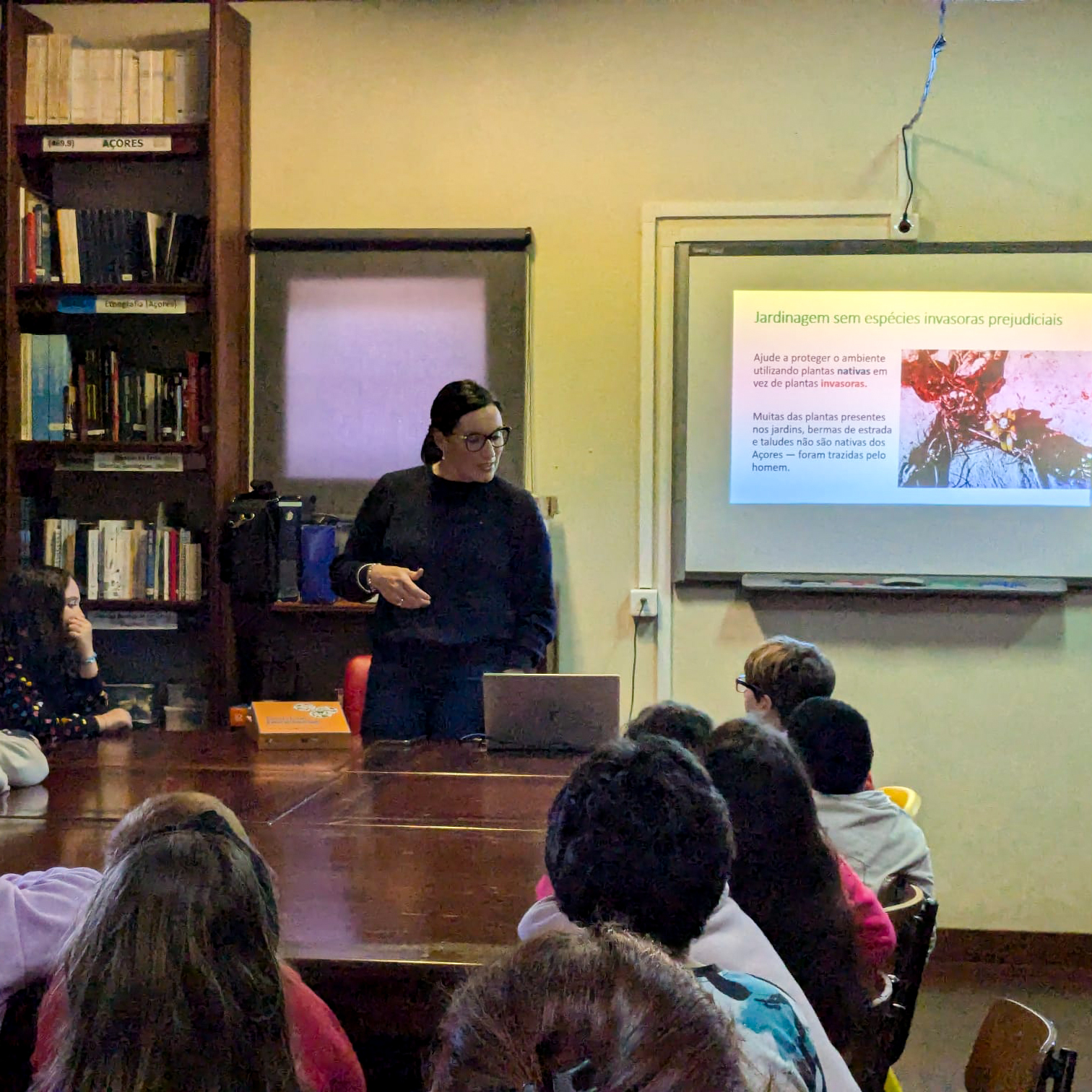 As part of this event, three sessions of the ‘Dobble Invasoras’ game were organised at the Mouzinho da Silveira Primary and Secondary School, with the participation of 52 students and 3 teachers, as well as the presentation of a guide to good gardening practices without invasive plants.