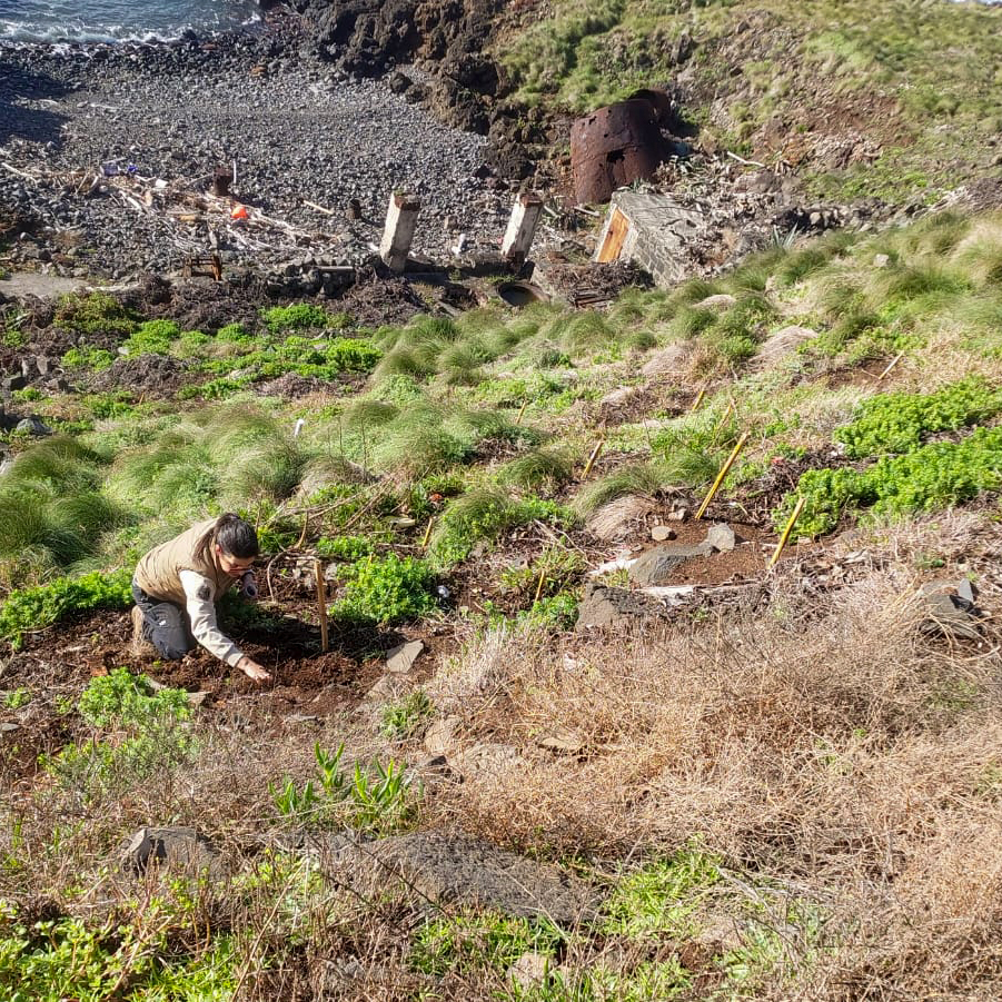 In the Ponta do Castelo intervention area, one of LIFE IP AZORES NATURA’s areas of operation on the island of Santa Maria, direct sowing of native and endemic species was carried out. This work took place in areas where invasive species had been removed, aiming to protect the areas most susceptible to erosion and promote the propagation of the project’s target species.