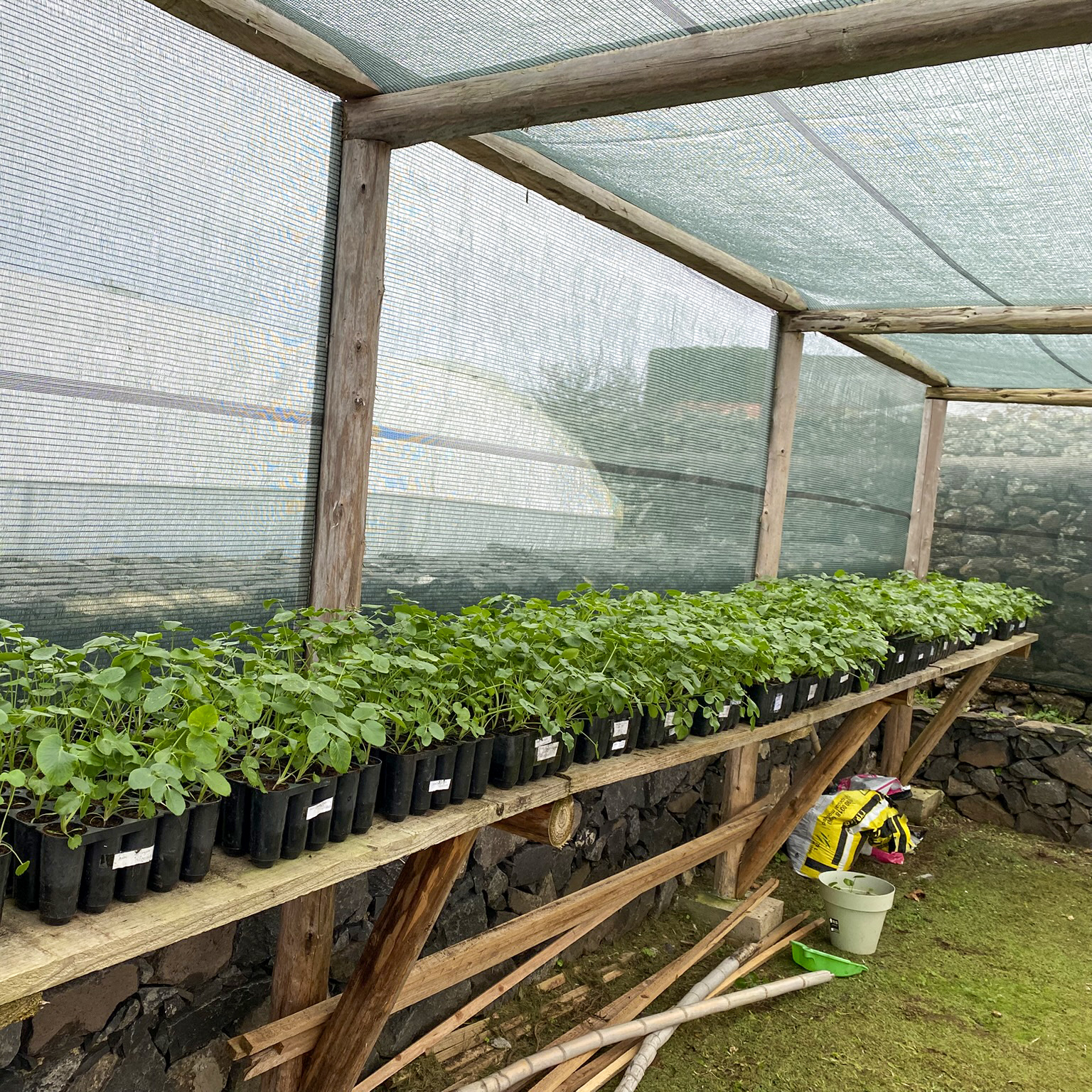 The various species produced in the nursery include Ammi seubertianum, Euphorbia azorica, Crithmum maritimum, Lotus azoricus, Limonium vulgare, Azorina vidalii and Aichryson santamariae, totalling more than 2,000 plants.