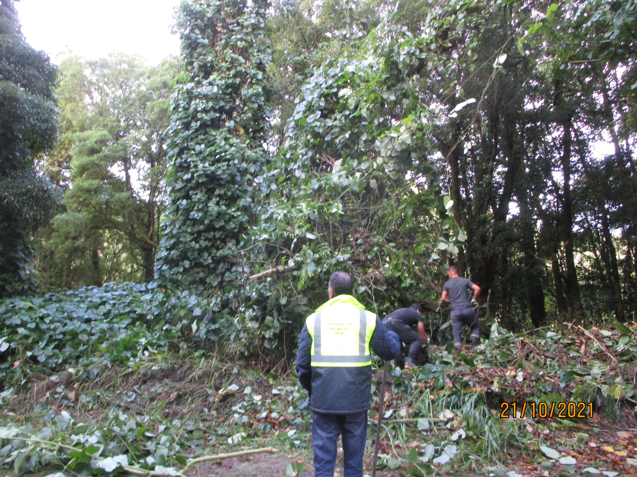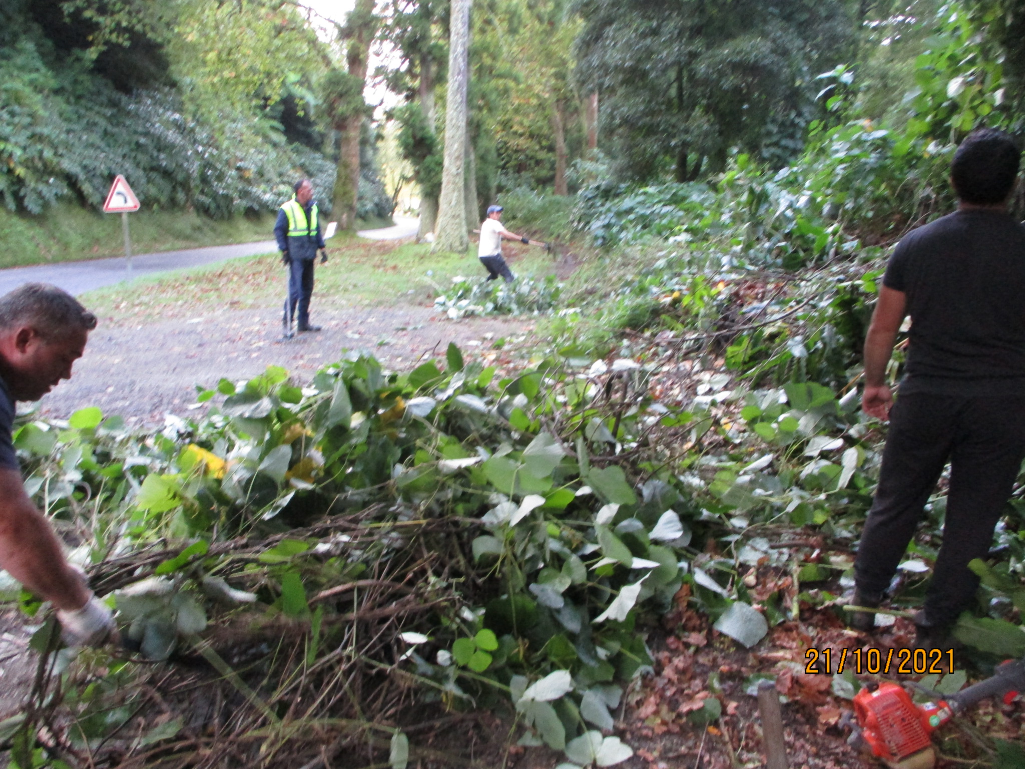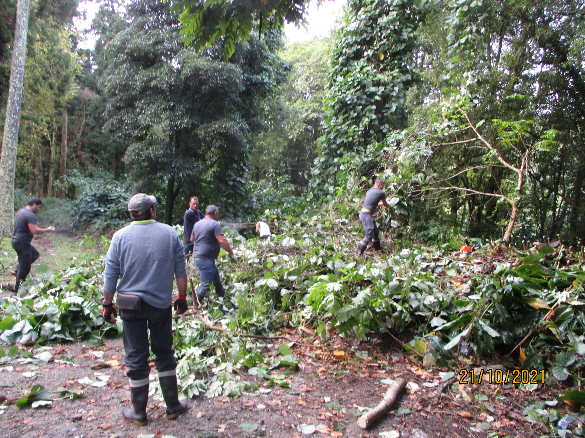 Together with the SΓ£o Miguel Environment and Climate Change Service, the teams, using mechanical methods, carried out the effective removal of this climber species, which was already widespread on the southern side of the Lagoa das Furnas (lagoon). The waste resulting from this action was carefully burnt to avoid new outbreaks of this species. This area will be subject to a maintenance process to eliminate any new specimens of the species that may appear.