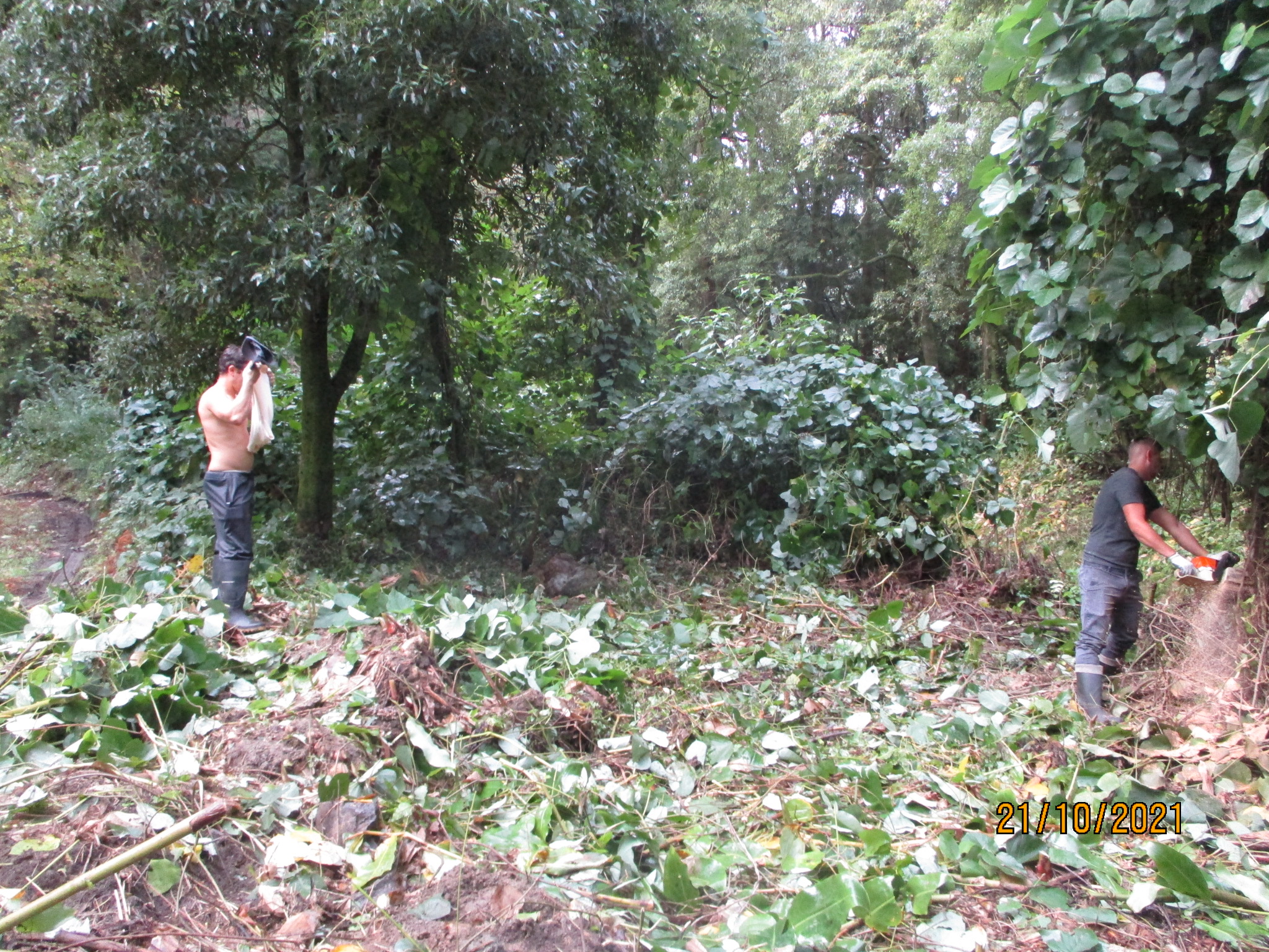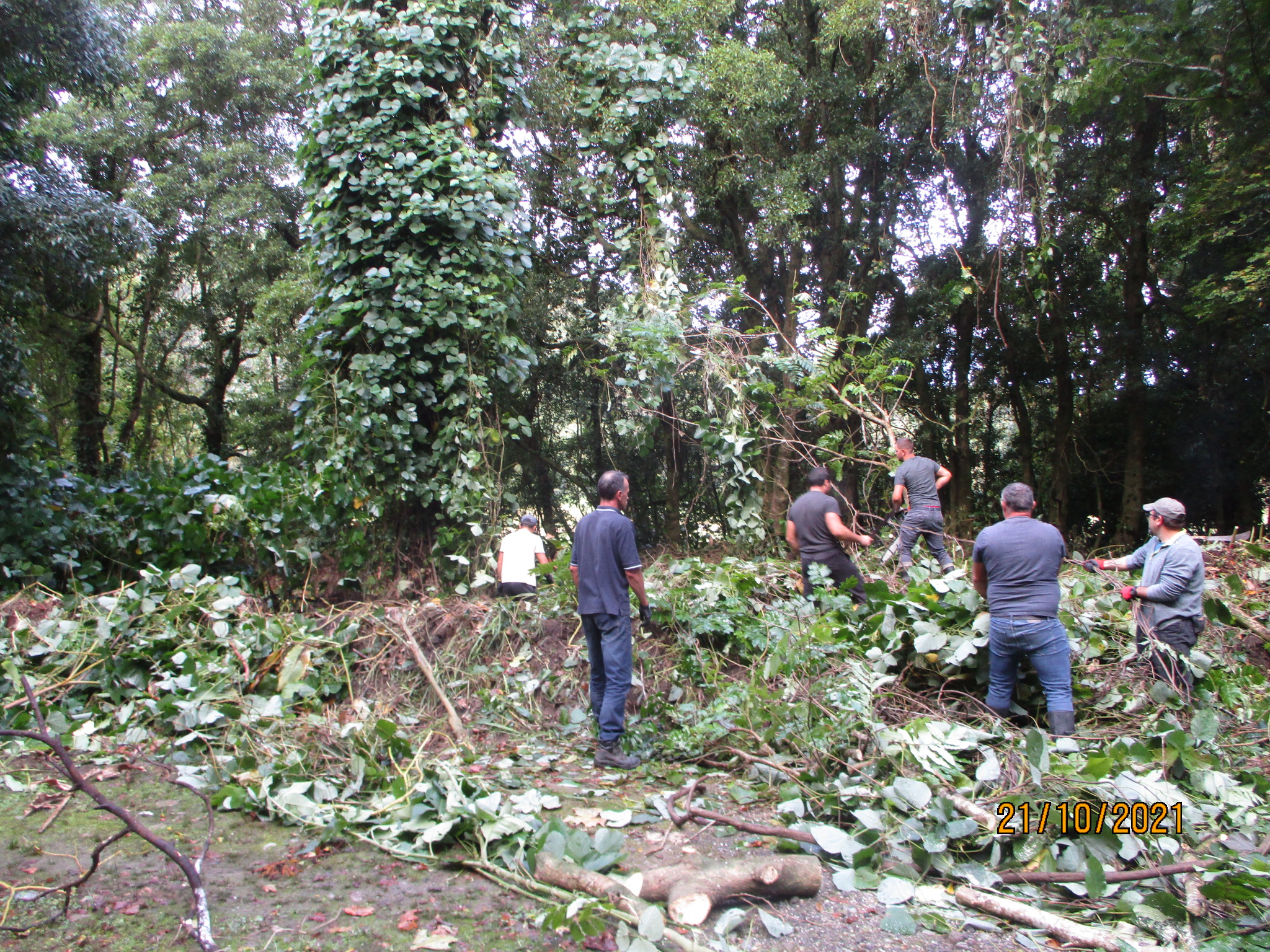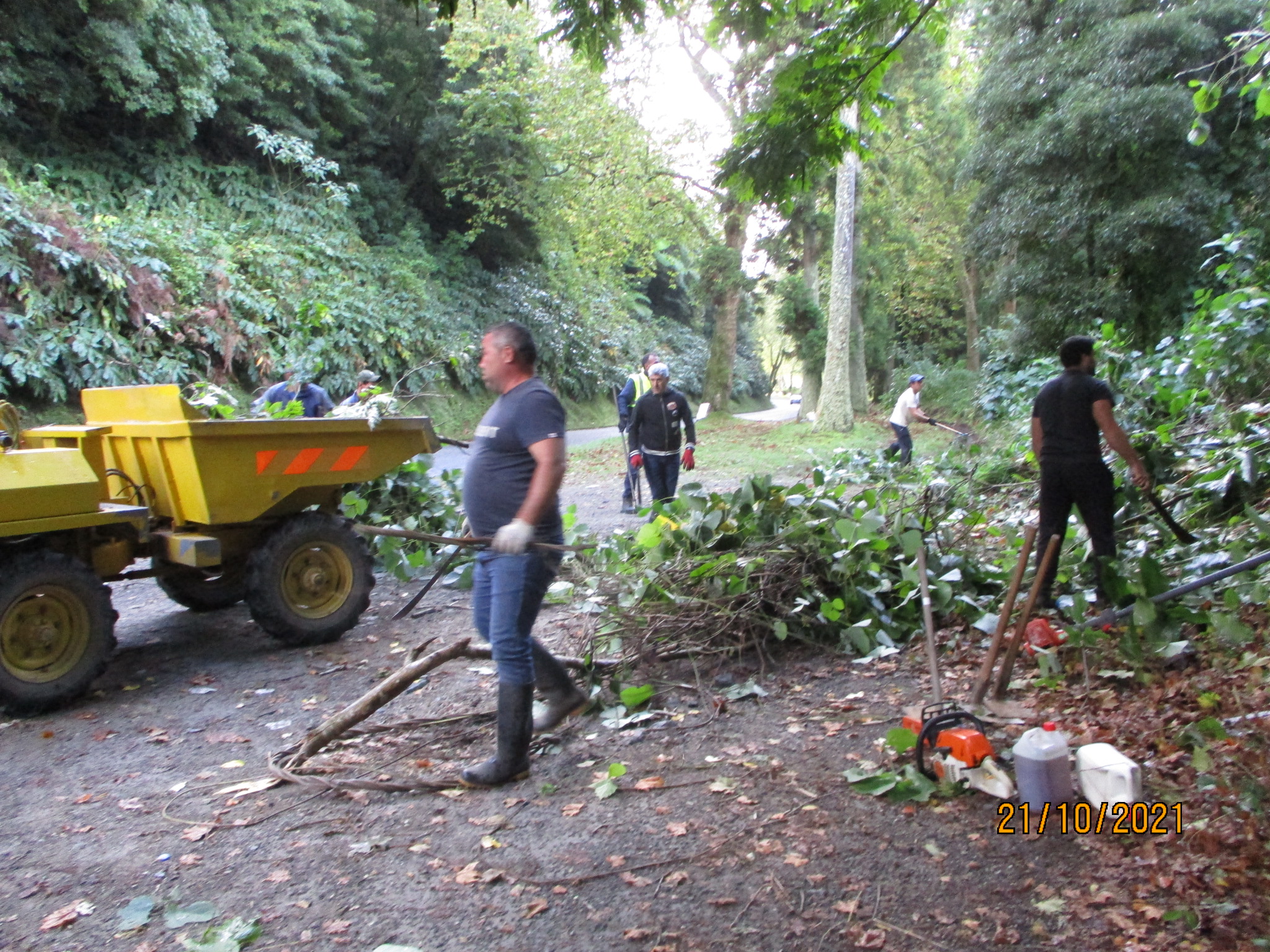 Together with the SΓ£o Miguel Environment and Climate Change Service, the teams, using mechanical methods, carried out the effective removal of this climber species, which was already widespread on the southern side of the Lagoa das Furnas (lagoon). The waste resulting from this action was carefully burnt to avoid new outbreaks of this species. This area will be subject to a maintenance process to eliminate any new specimens of the species that may appear.