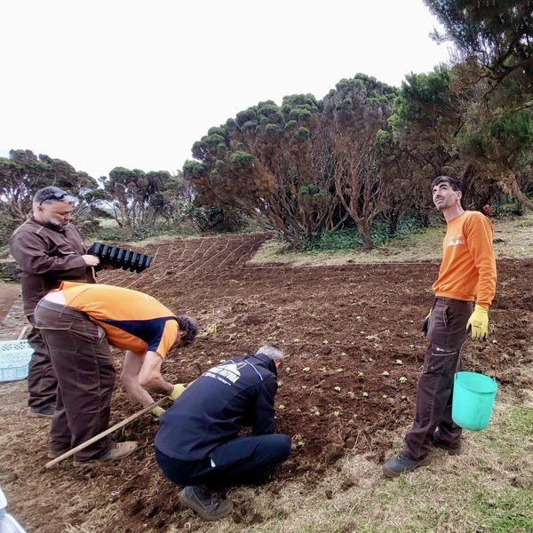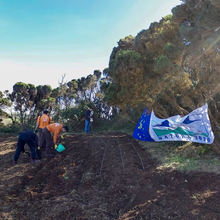 Under Action C3.2 “In-situ conservation” of the LIFE IP AZORES NATURA project, 190 individuals of Rumex azoricus and 240 individuals of Myosotis maritima were planted in the parish of Rosais on the island of São Jorge, on a zone classified as a Special Area of Conservation (PTJOR0013). This initiative aims to strengthen the populations of two protected endemic species in an unfavourable state of conservation, thus contributing to the preservation of these species and their habitat.