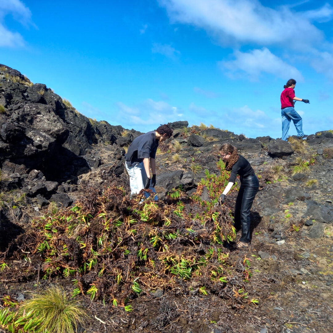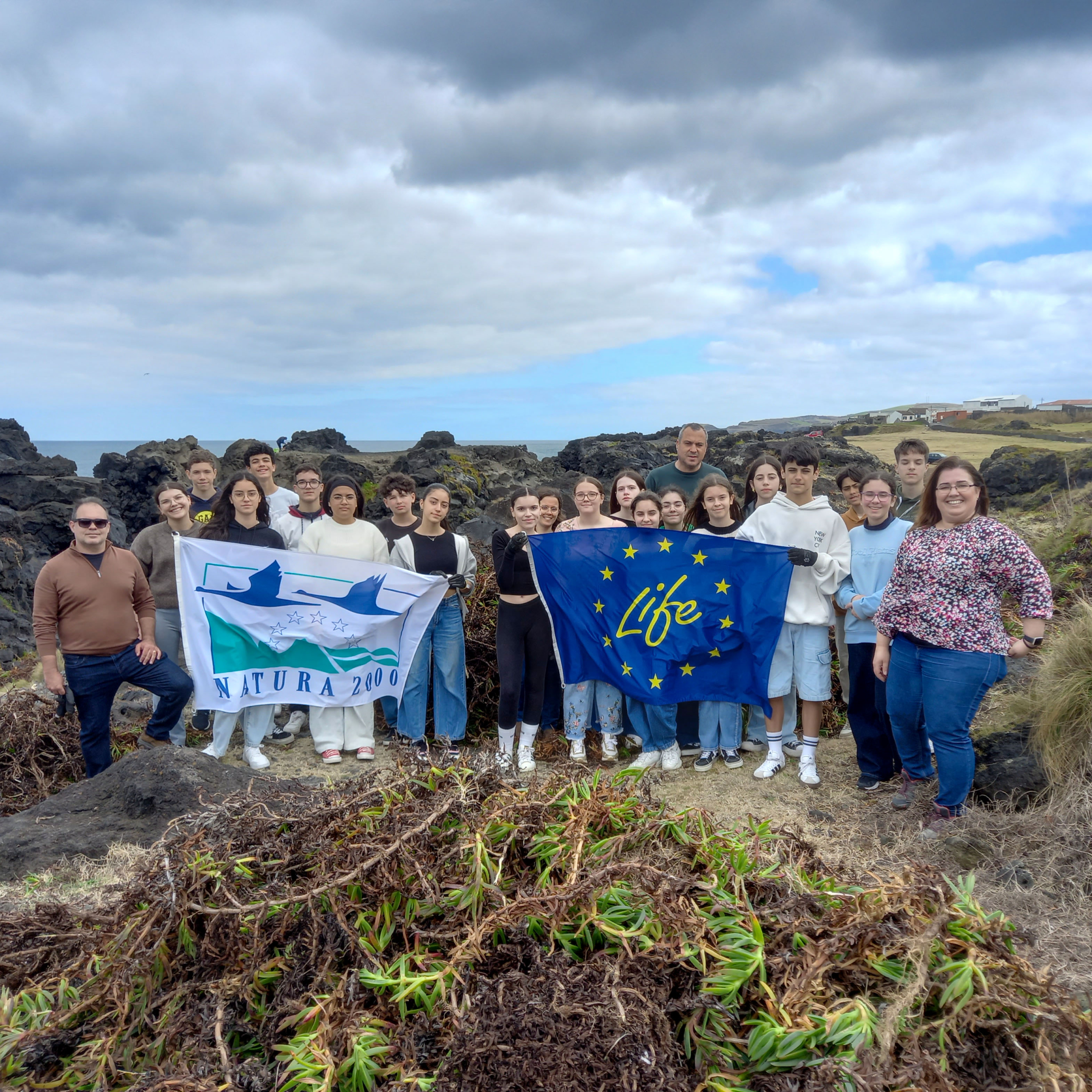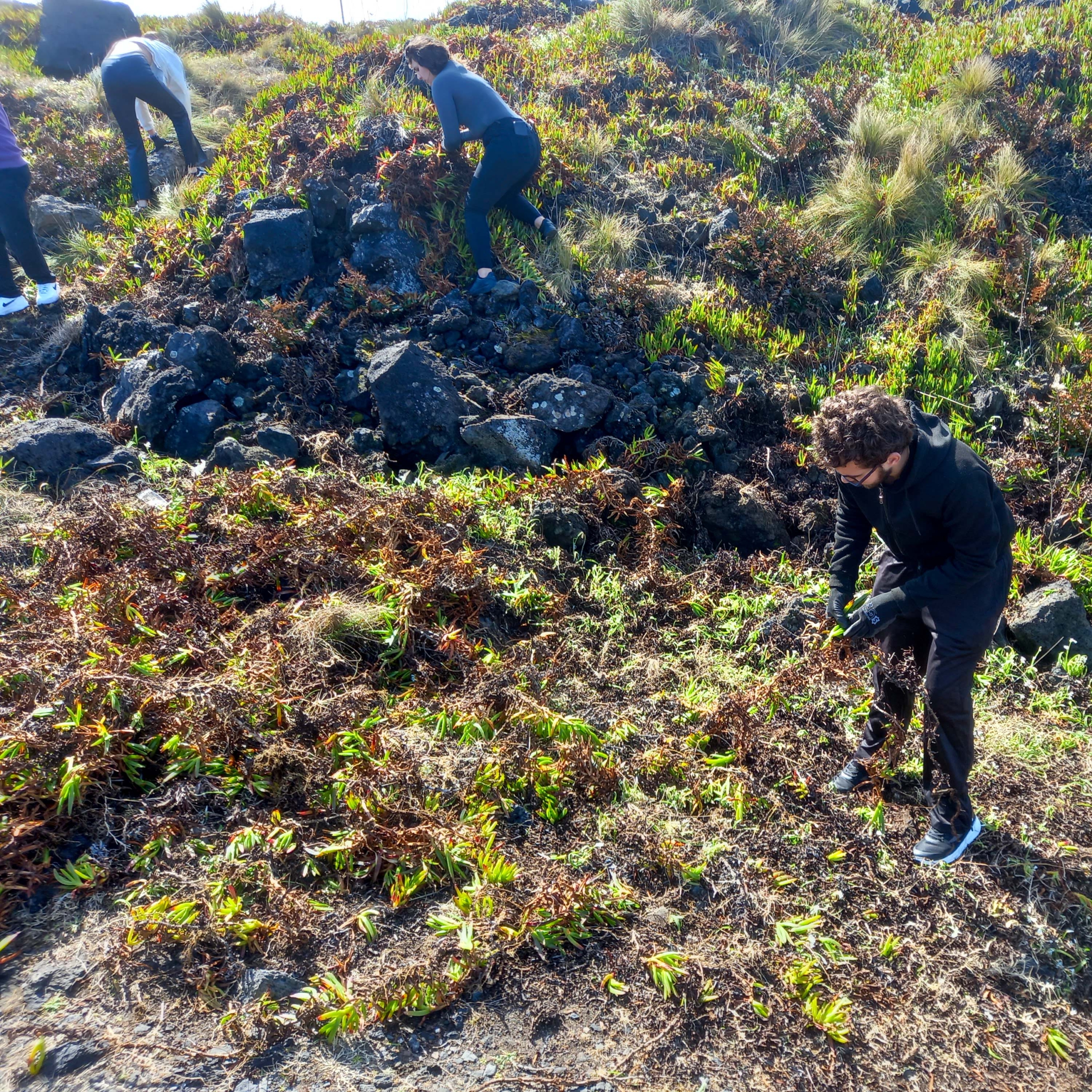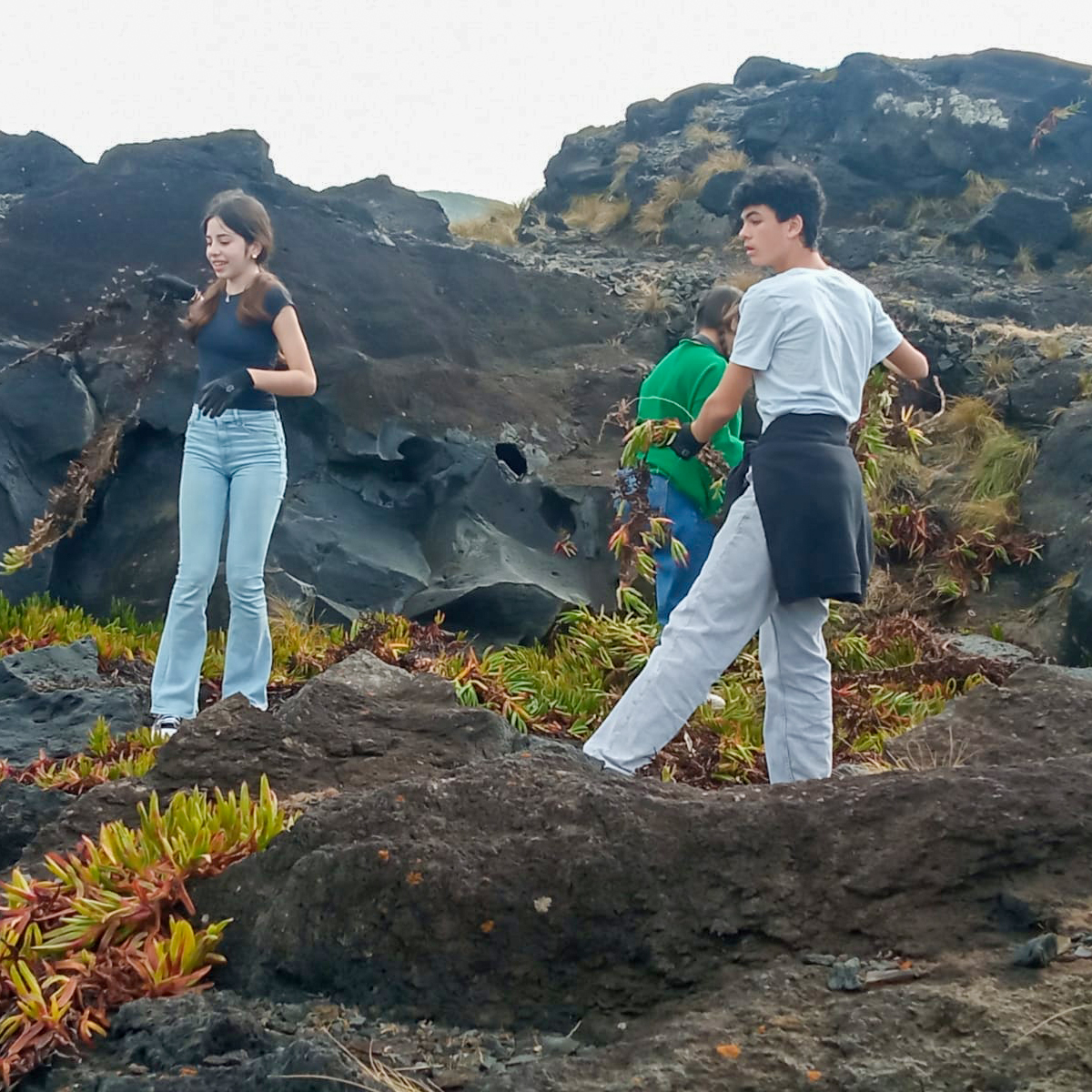 In the first action, 20 students and 2 teachers from Ribeira Grande Secondary School took part, and around 3 tonnes of this invasive plant were removed. Following the intervention, 60 specimens of native species were planted, including Festuca petraea, Solidago azorica, Pericallis malvifolia and Tolpis succulenta.