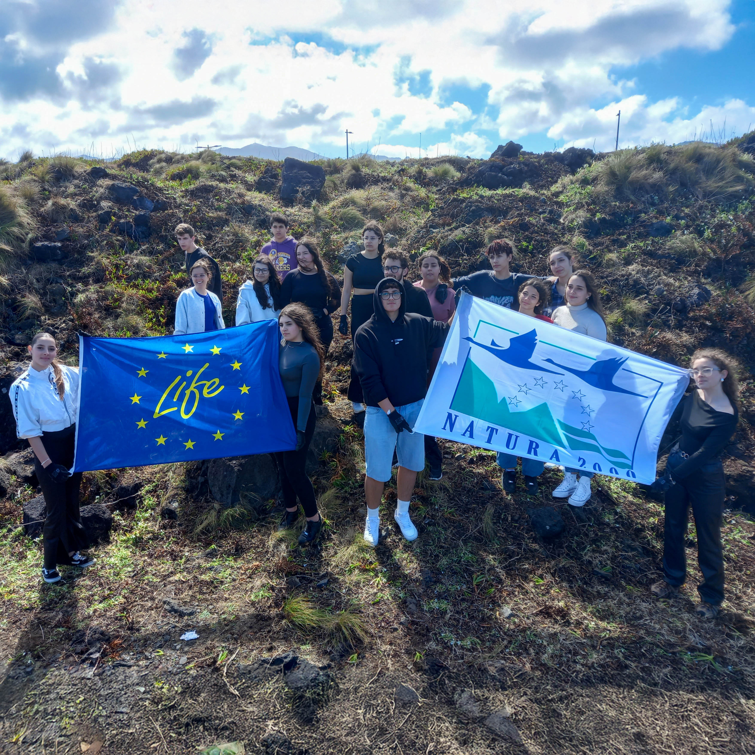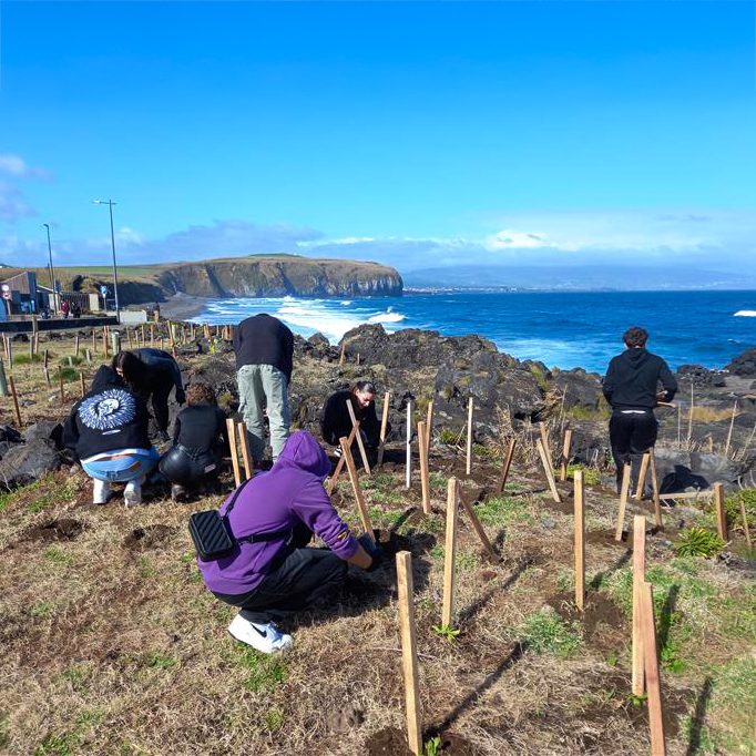 The second action involved 18 students and 1 teacher from the Ribeira Grande Vocational School, and resulted in the planting of 127 specimens of native species such as Ammi seubertianum, Morella faya, Pericallis malvifolia, and Tolpis succulenta, as well as the removal of around 1 tonne of Carpobrotus edulis.