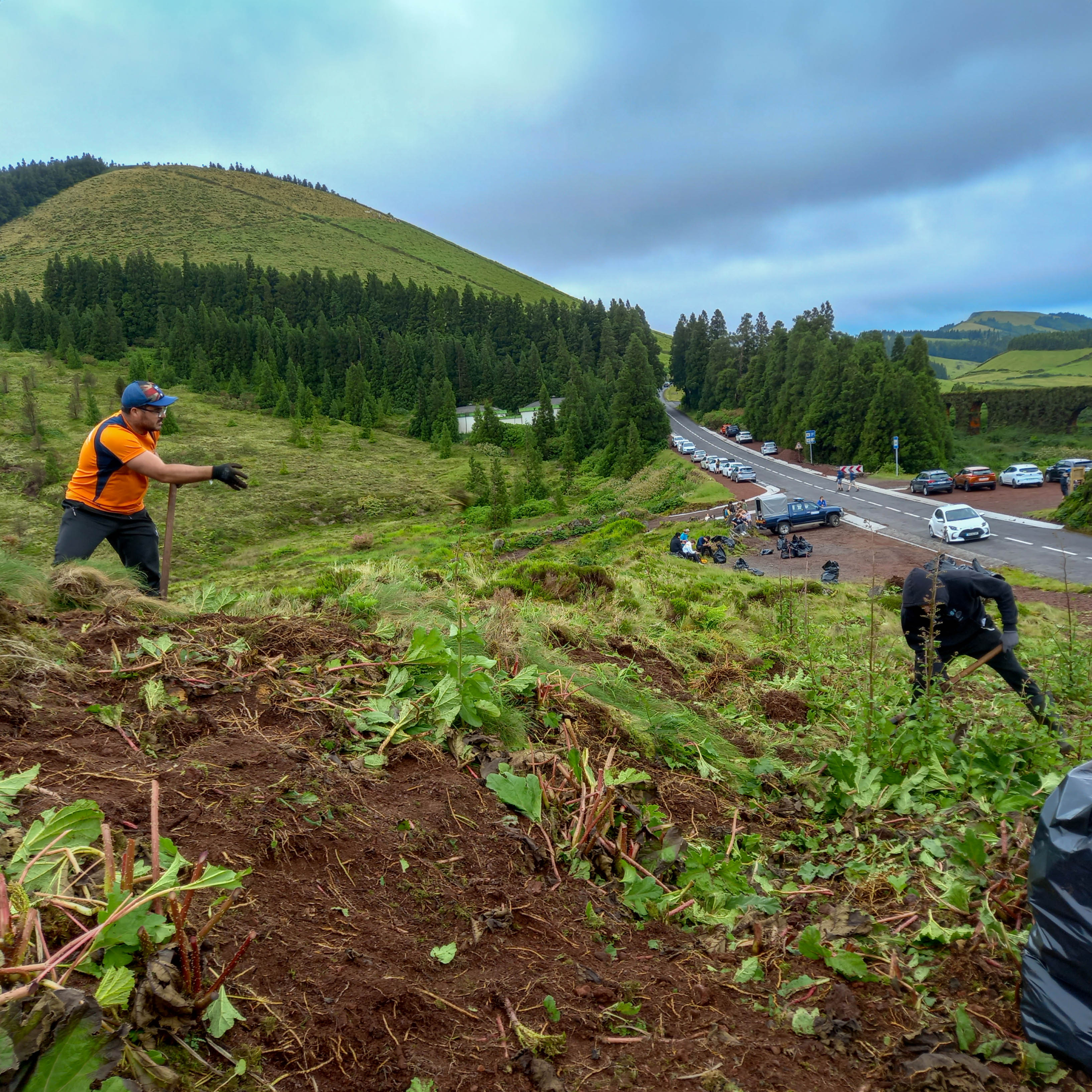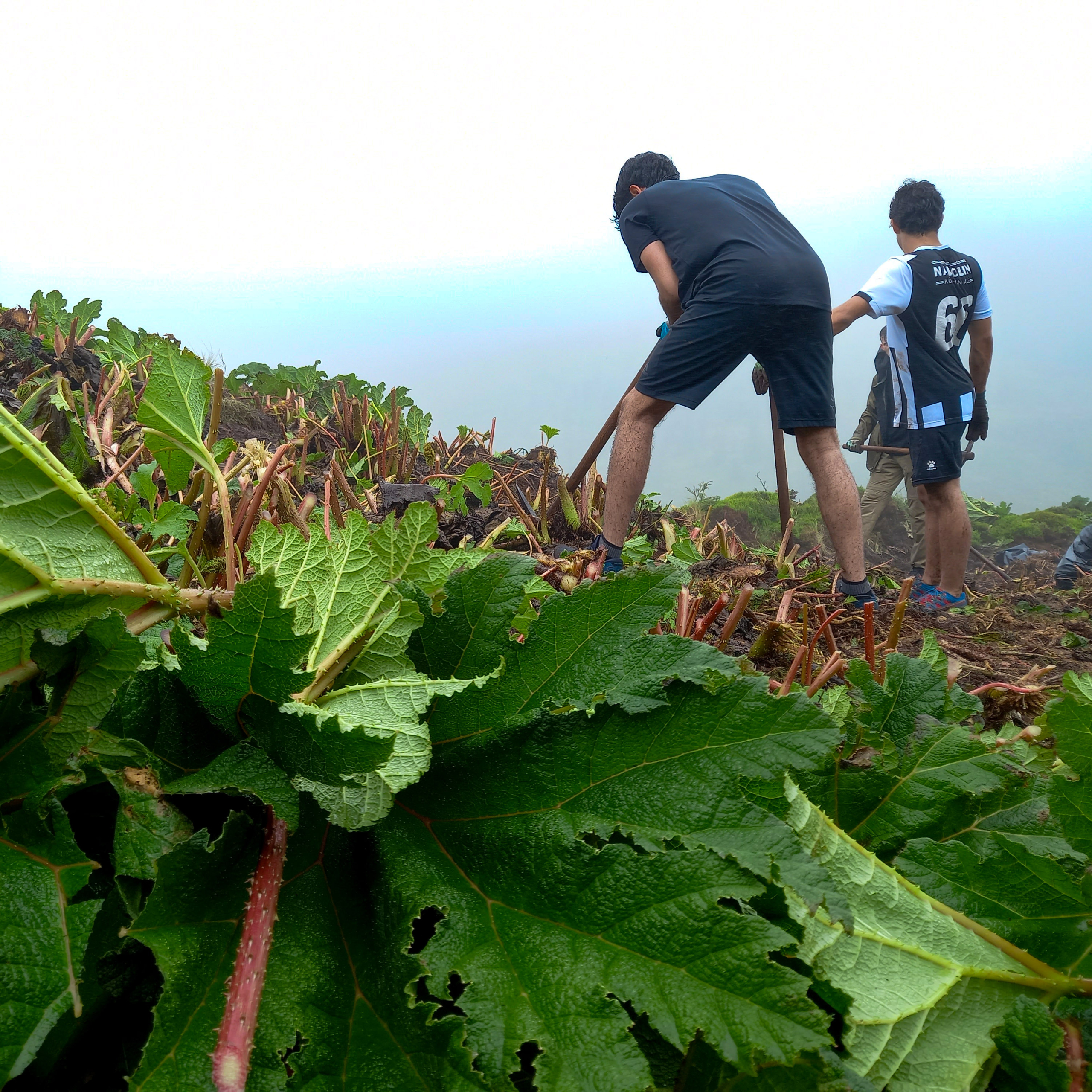 Students from Switzerland’s International School of Zug and Lucern were on the island of São Miguel, volunteering at Pico do Carvão to remove invasive species, namely Chilean Rhubarb (Gunnera tinctoria).
