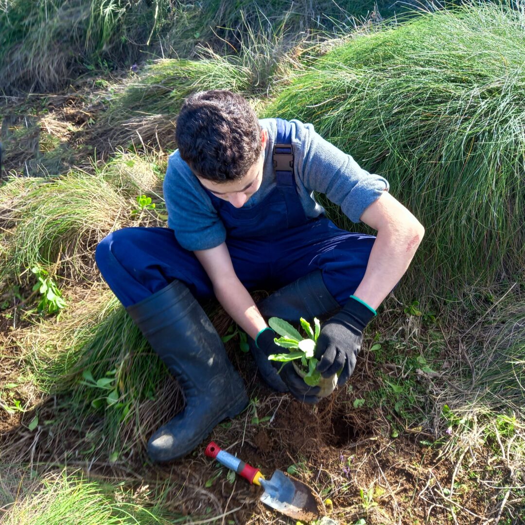 A remoção das invasoras foi seguida por uma plantação de espécies nativas neste local, ocupando o espaço liberto pela remoção das invasoras e promovendo, assim, a recuperação desta área. Foram plantados 4 indivíduos de pé-de-pomba, 11 indivíduos de cabaceira, 11 indivíduos de visgo (𝘛𝘰𝘭𝘱𝘪𝘴 𝘴𝘶𝘤𝘤𝘶𝘭𝘦𝘯𝘵𝘢) e 19 indivíduos de vidália.
