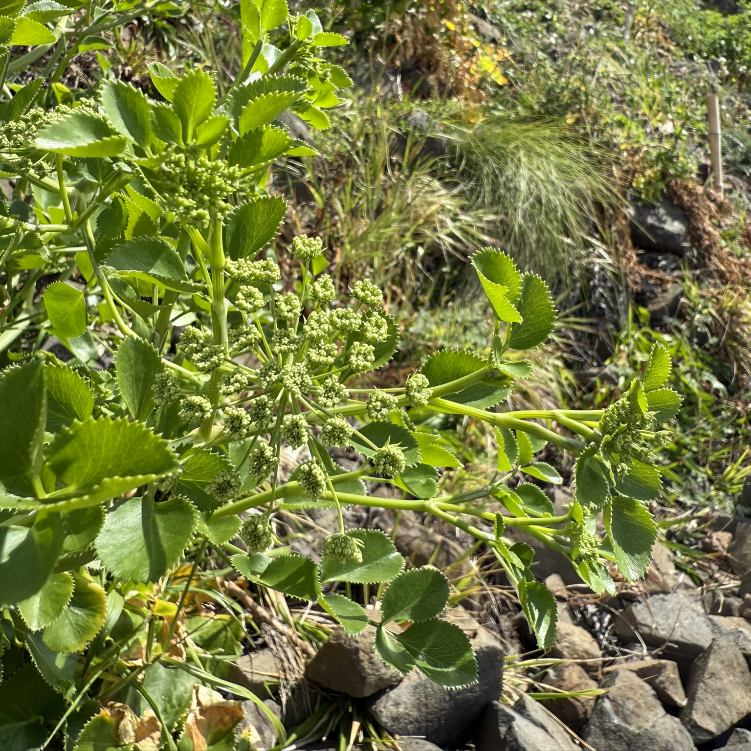 - Ammi seubertianum, plantada em outubro de 2024, que já se encontra em floração, apresentando-se viçosa e saudável;