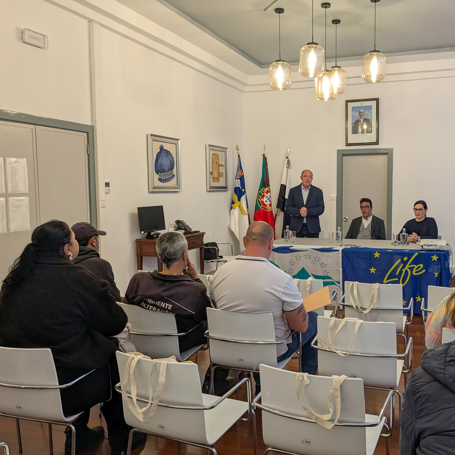 Durante a visita à ilha do Corvo, a equipa do projeto LIFE IP AZORES NATURA participou no Festival das Reservas da Biosfera, promovido pela Secretaria Regional do Ambiente e Ação Climática, marcando presença na sessão de abertura que teve lugar na Câmara Municipal da Vila do Corvo.