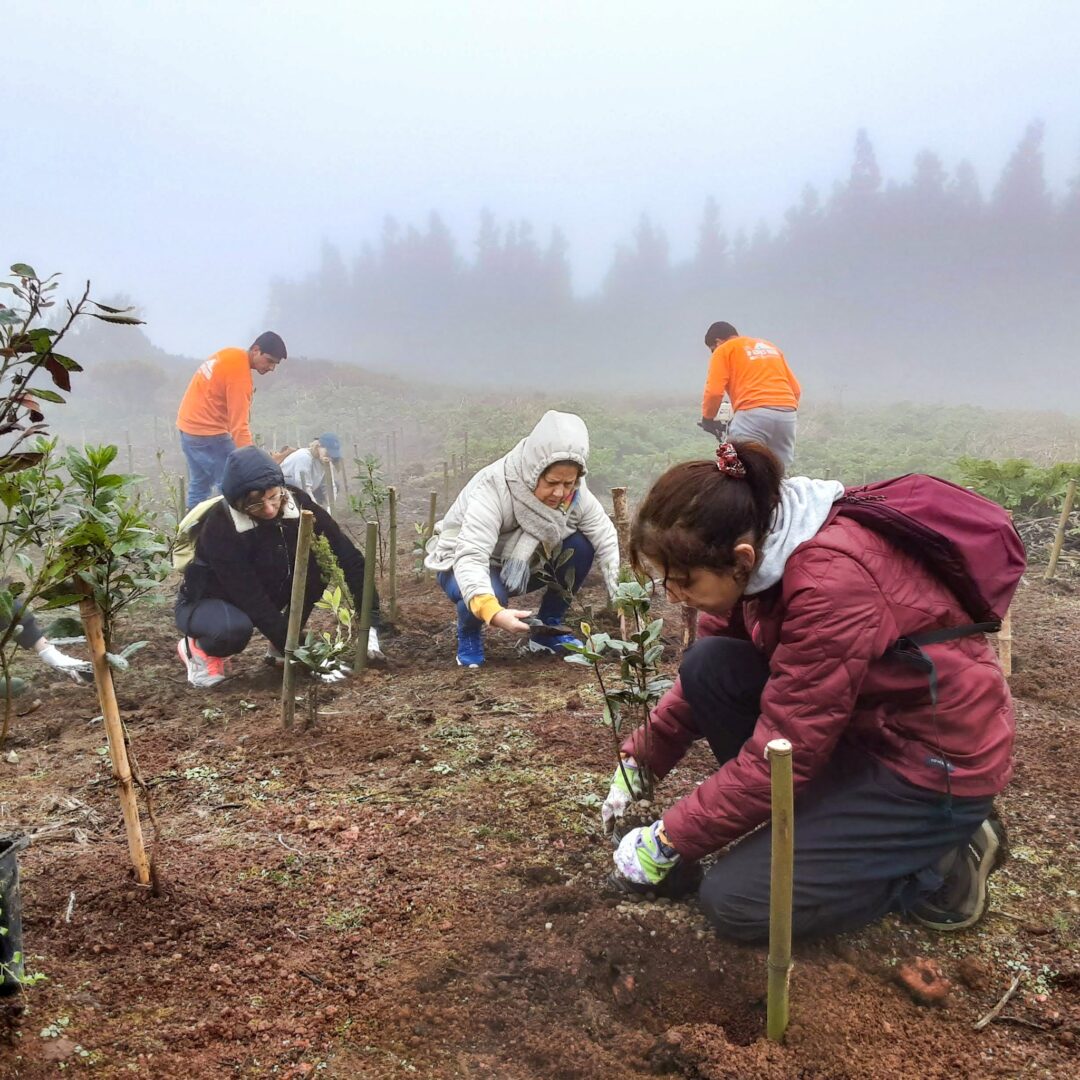Assim, enquadrado na Ação E5 do projeto “Envolvimento público e programa de voluntariado”, e em parceria com o Serviço de Ambiente e Alterações Climáticas de São Miguel, foi promovida uma ação de voluntariado aberta à comunidade que contou com a participação de sete voluntários, três turistas e também com alguns representantes da Associação para a Promoção e Proteção Ambiental dos Açores (APPAA), onde foram plantados cerca de 300 indivíduos de faia (𝘔𝘰𝘳𝘦𝘭𝘭𝘢 𝘧𝘢𝘺𝘢).