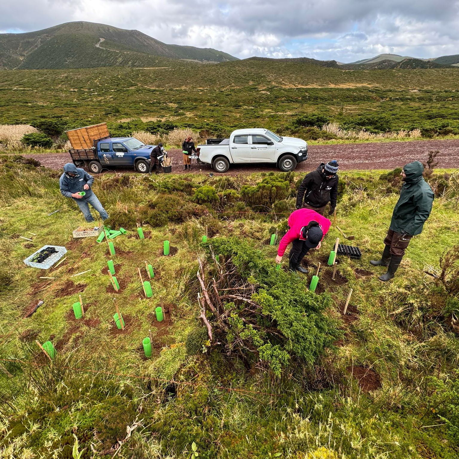 Durante a visita foi realizada uma sessão de capacitação prática para assistentes operacionais do Serviço de Ambiente e Ação Climática da ilha das Flores, centrada na escolha dos melhores locais para a plantação das espécies-alvo, produzidas no Jardim Botânico do Faial.