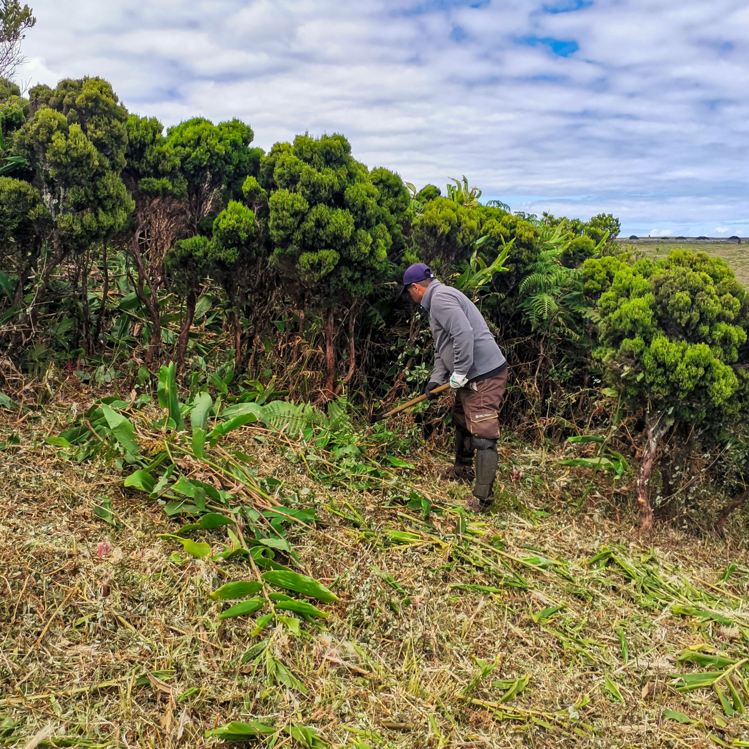 • Foram removidas 61 árvores de metrosideros, 40 incensos, silva-brava e feto-das-pastagens, numa área densamente coberta por espécies autóctones;
